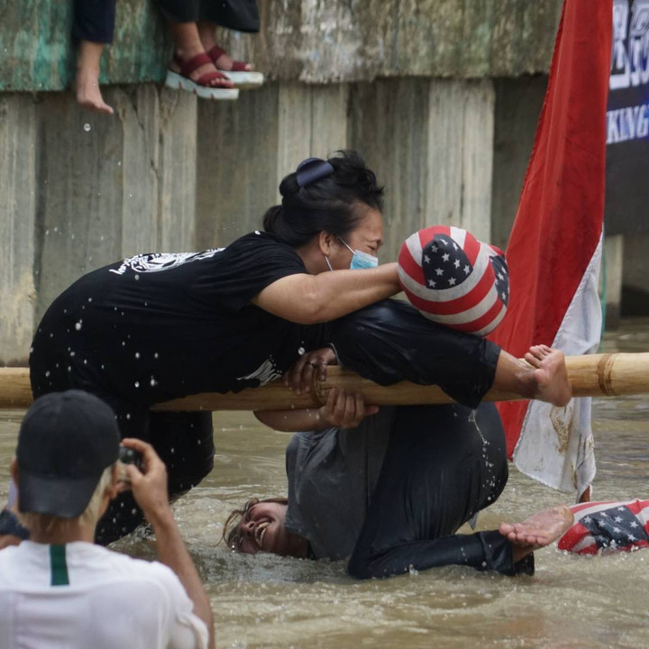 Foto: Keseruan Warga Ikut Lomba Pukul Bantal di Kali BekasikumparanNEWS