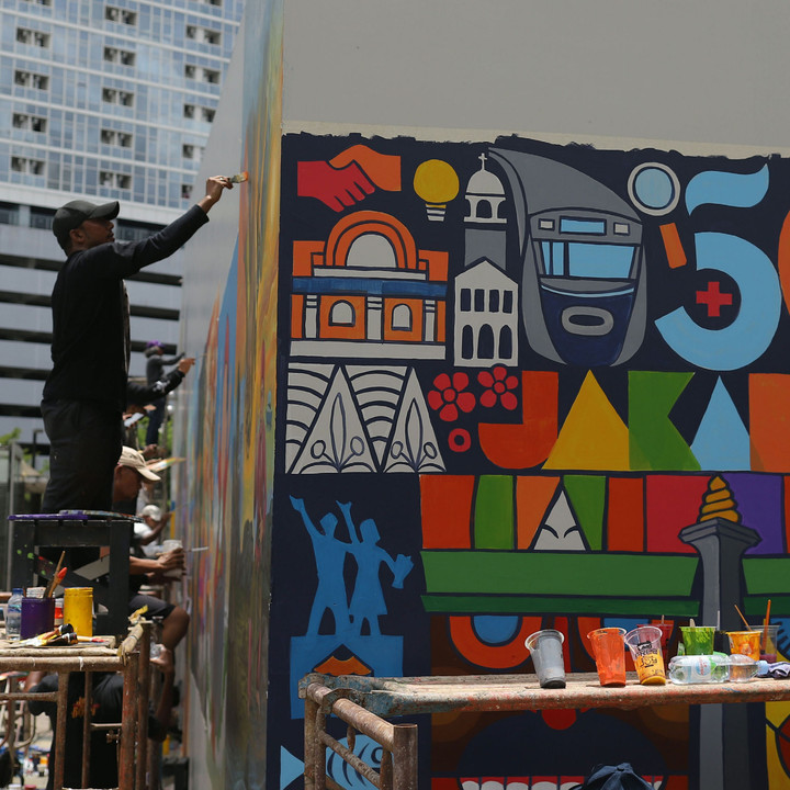 Foto: Suarakan Jaga Jakarta Lewat Seni Mural di Taman Ismail Marzuki Jakarta