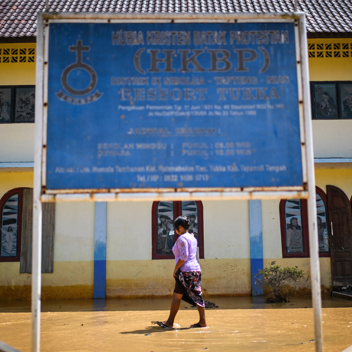 Foto: Tetap Beribadah ke Gereja di Tengah Sisa Bencana di Tapanuli Tengah