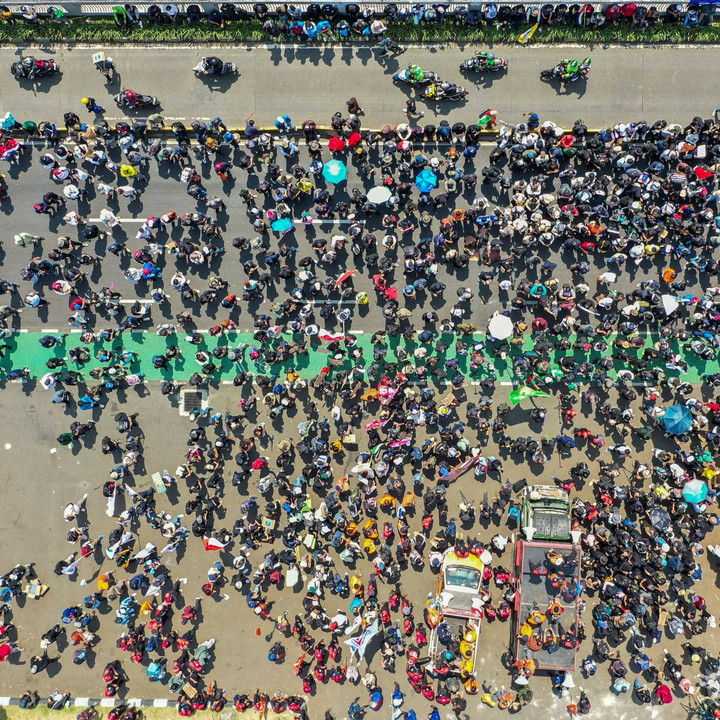 Foto Udara: Aksi Unjuk Rasa Tolak RUU Pilkada di Depan Gedung DPR kumparanNEWS
