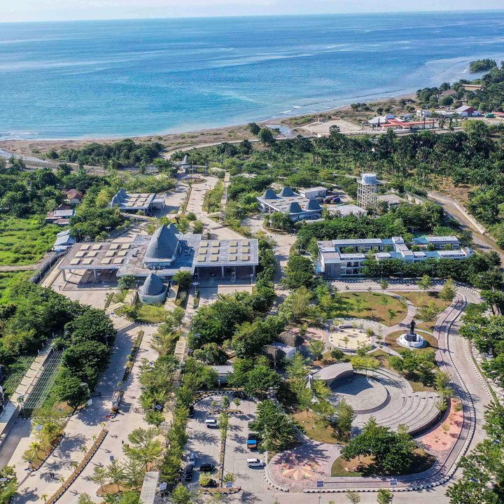 Foto udara Pos Lintas Batas Negara Terpadu (PLBNT) Mota Ain, Desa Silawan, Kabupaten Belu NTT, Senin (23/5).kumparanNEWS