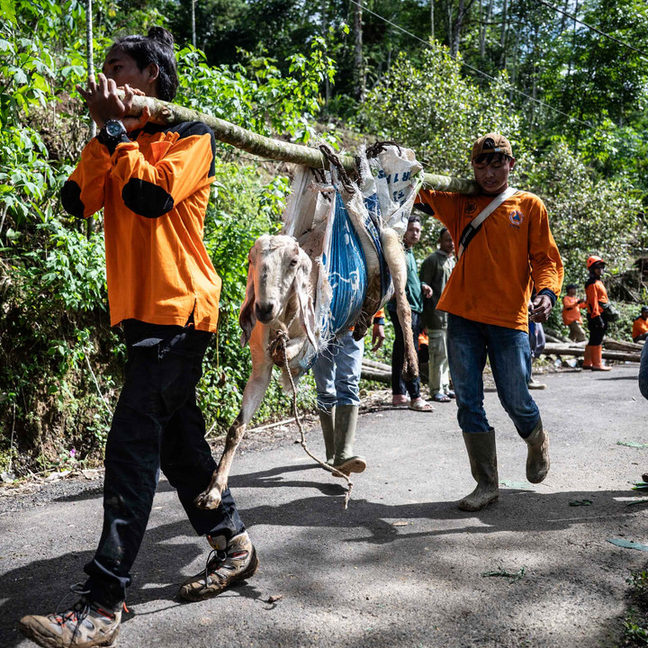 Foto: Warga Banjarnegara Gotong Hewan Ternak Usai Dilanda Longsor