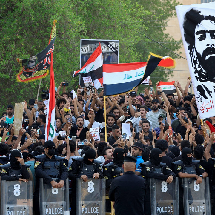 Warga Irak berunjuk rasa menyuarakan protes anti-pemerintah di Baghdad, Irak, Jumat (2/9/2022).kumparanNEWS