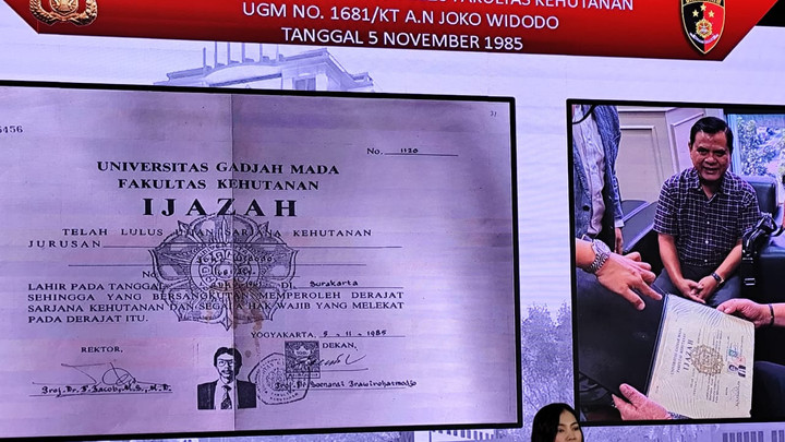 "Dalam forum gelar perkara khusus tersebut atas seizin dan kesepakatan para pihak dalam forum, penyidik telah menunjukkan ijazah atas nama Joko Widodo yang diterbitkan oleh Fakultas Kehutanan UGM," kata Dirreskrimum Polda Metro Jaya, Kombes Iman Imanuddin, di Polda Metro Jaya, Kamis (18/12).