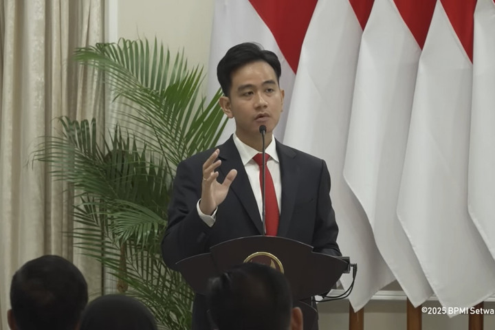 Wakil Presiden RI Gibran Rakabuming Raka memberikan sambutannya pada acara Peserta Pendidikan Penyiapan & Pemantapan Pimpinan Nasional (P4N) Angkatan 68 Lemhannas di Istana Wapres, Jakarta.