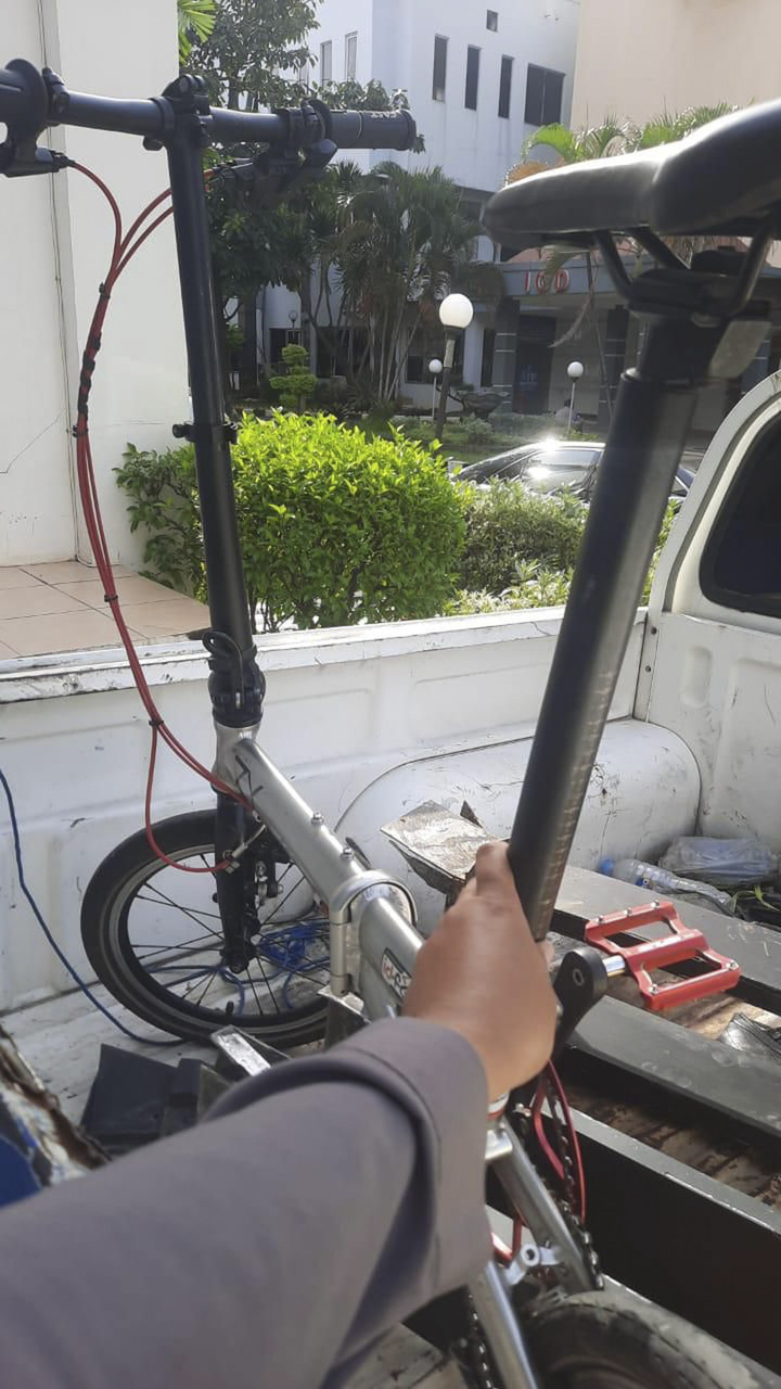 Sepeda yang dikendarai korban mengalami kerusakan pada bagian stang. Sedangkan mobil listrik rusak di bagian depan.