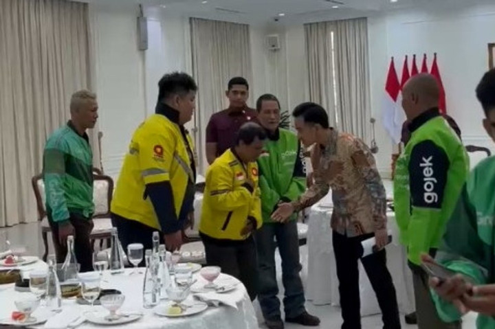 Sebelumnya, perwakilan ojol diundang untuk bertemu Gibran pada Minggu (31/8), menyusul tewasnya ojol Affan Kurniawan akibat terlindas mobil rantis Brimob dalam aksi demo. Mereka tampak mengenakan jaket perusahaan aplikasi transportasi Gojek, Grab, Maxim, dan InDrive, dalam pertemuan itu.