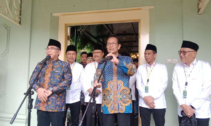 Ketua Umum Pengurus Besar Nahdlatur Ulama (PBNU), Yahya Cholil Staquf atau Gus Yahya, bersama jajarannya bersilaturahmi ke Gubernur DIY, Sri Sultan Hamengku Buwono X, di Kepatihan Pemda DIY, Senin (29/1).