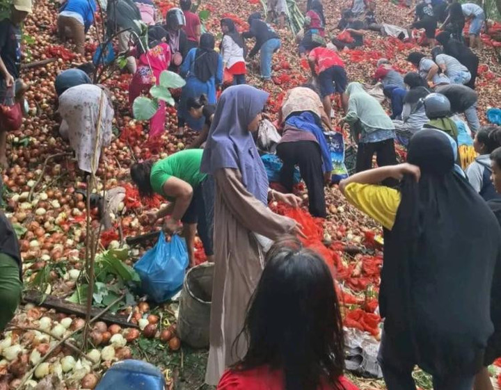 Bawang-bawang itu disebut-sebut dibuang secara misterius dari sebuah truk yang identitasnya belum diketahui. Kejadian ini segera menarik perhatian warga sekitar. Banyak yang datang beramai-ramai membawa karung dan kantong plastik untuk memungut bawang yang masih tampak segar, sebagian untuk dikonsumsi, sebagian lainnya untuk dijual kembali.