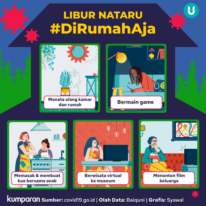 Berikut infografik kegiatan yang bisa kita lakukan di rumah selama libur nataru.kumparanNEWS