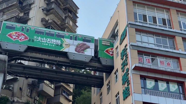 kumparan jalan-jalan di Kota Chongqing, China, melihat kereta ikonik yang melaju menembus apartemen.kumparanNEWS