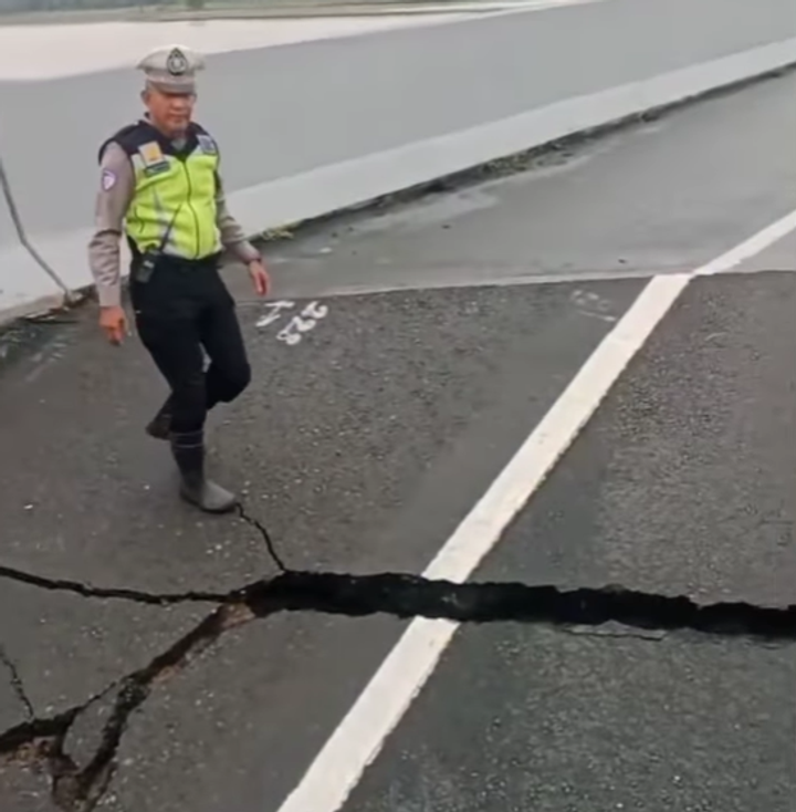 Jalan Ruas Tol Tebing Tinggi-Medan di KM 41 Amblas, Arus Lalu Lintas Lumpuh