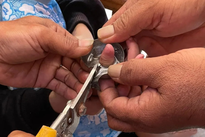 Ternyata, jari balita itu tersangkut tutup botol besi yang sulit dibuka dan membuat jarinya terluka. Sang Ibu meminta bantuan petugas Damkar untuk membukanya.