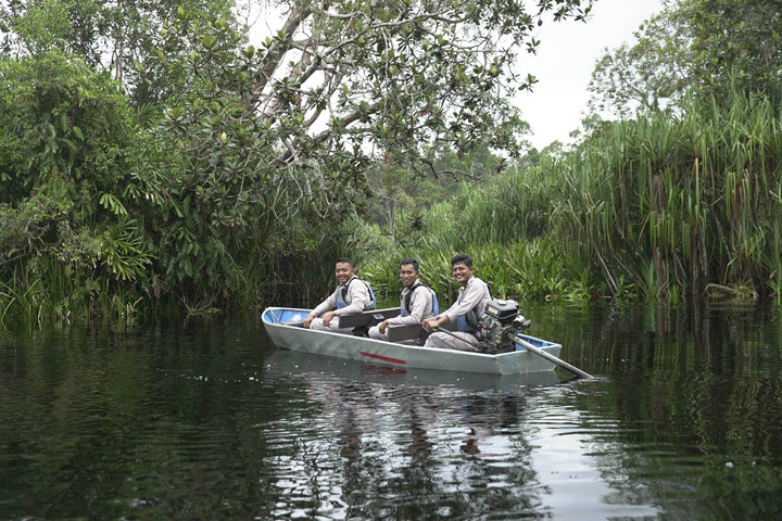 Gemuruh ketinting, perahu kecil berbahan metal, terdengar dari jauh. Ketinting bertenaga mesin itu membelah Sungai Serkap, sungai yang masuk kawasan Restorasi Ekosistem Riau (RER) di Semenanjung Kampar, Riau. Di atasnya terdapat tiga jagawana alias ranger yang berpatroli sejauh puluhan kilometer demi menjaga keamanan wilayah konservasi alam.