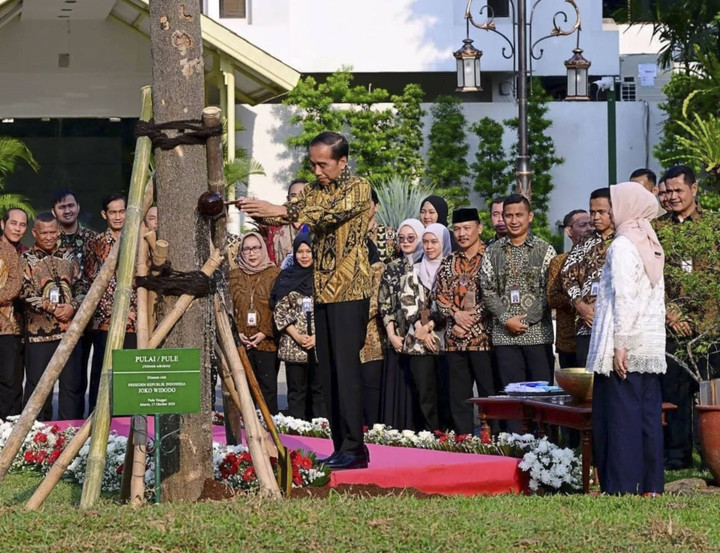Jelang Pensiun, Jokowi dan Iriana Tanam Pohon Flamboyan-Pulai di Istana