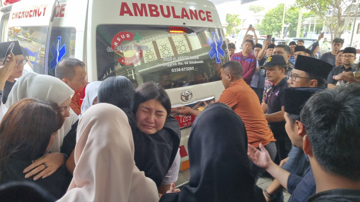 Isak tangis keluarga dan kerabatnya pecah saat jenazah datang. Kalimat syahadad tauhid terus dilantunkan. Sekitar tiga orang keluar dari mobil ambulans.