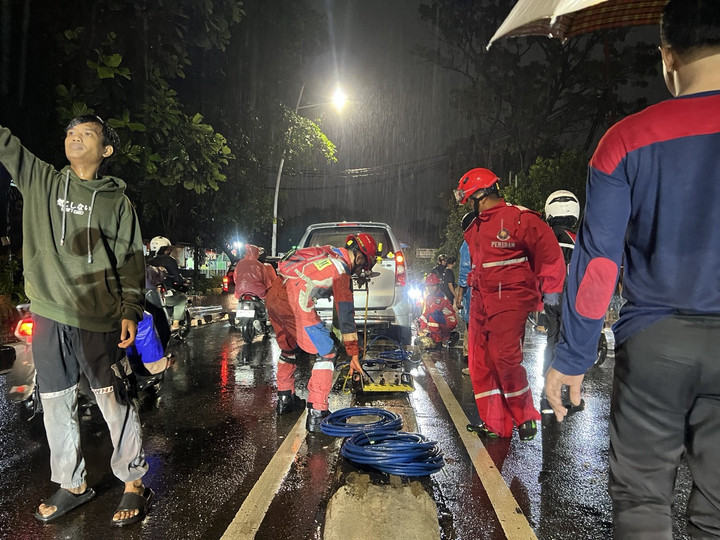 "Ada orang datang pakai motor, berdua, melaporkan 'Ada mobil yang tersangkut, yang nyetir bapak-bapak tua'," ujar Septian, Tim Damkar Salihara.