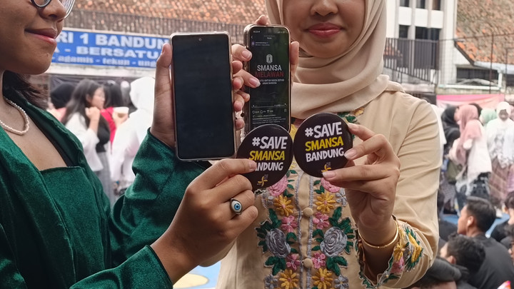 Bunyi spanduk itu, "#Save SMANSA Bandung", "Bersatu untuk Masa Depan Bangsa. Sekolah titipan Generasi Bukan Jarahan Para Pemakan Bumi. #SMANSA Melawan."