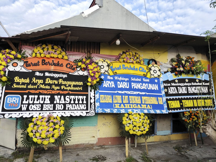 "Turut Berduka Cita Atas Wafatnya Sahabat Kami Arya Daru Pangayunan. Keluarga Alumni Ilmu Hubungan Internasional UGM (KAHIGAMA)," tulis karangan bunga tersebut.