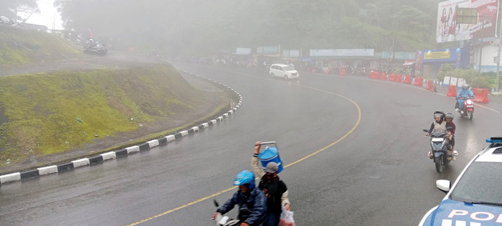 Kanit Gakkum Satlantas Polres Cianjur, Ipda Ika Cakra Mustika, mengatakan kondisi cuaca hujan deras disertai kabut tebal kerap menyelimuti jalur di kawasan wisata Puncak Pass, Cipanas.