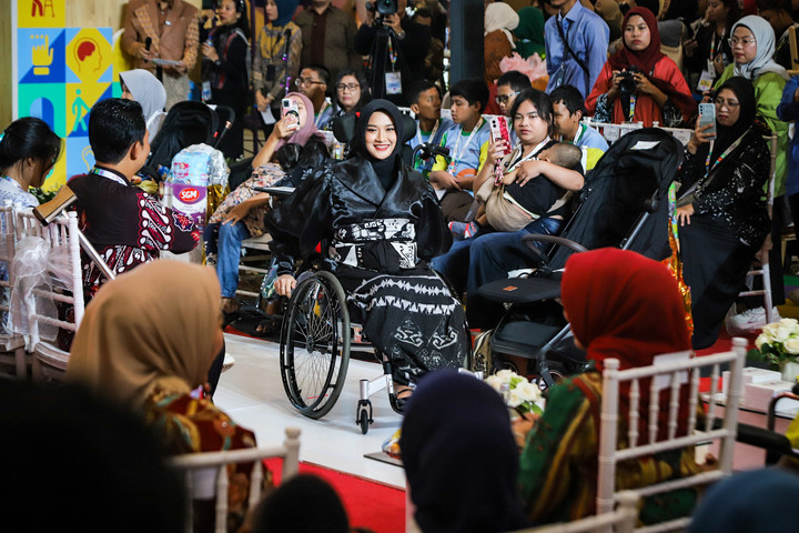 Di panggung utama, digelar fashion show, menampilkan busana yang didesain oleh penyandang disabilitas dan dikenakan oleh model difabel.