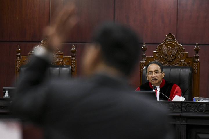 Ketua Hakim MK Suhartoyo meminta agar para pihak menghormati jalannya sidang hingga pembacaan putusan dengan tidak memberikan interupsi.kumparanNEWS