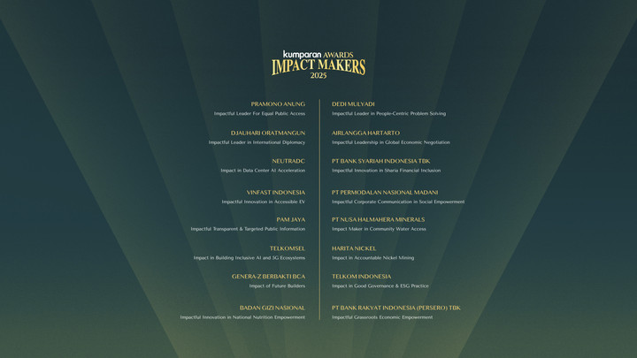 kumparan memberikan apresiasi kepada tokoh hingga korporasi yang memberikan dampak positif. Penghargaan diberikan pada kumparan Awards Impact Makers 2025 dengan tema "Igniting a Brighter Indonesia" di Bali Room, Hotel Indonesia Kempinski, Jakarta Pusat, Kamis (18/12).