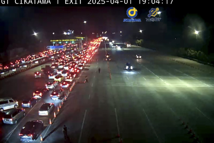Arus lalu lintas di ruas Tol Jakarta-Cikampek sudah kembali lancar pada Selasa (1/4) malam.kumparanNEWS