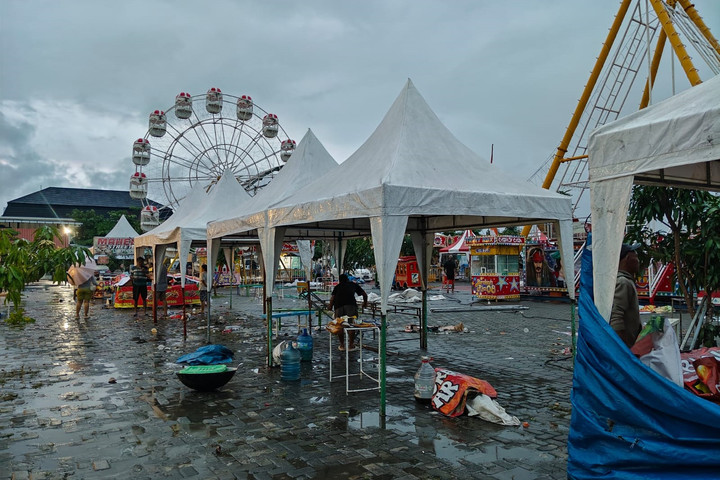 Lapak Pedagang Pasar Malam di Sleman Porak Poranda Dilanda Hujan-Angin Kencang