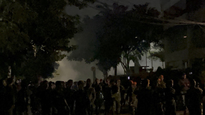 Dalam kondisi gelap, kericuhan masih terjadi antara massa dan aparat. Tembakan kembang api bersahut-sahutan dengan tembakan gas air mata yang dilepaskan polisi.
