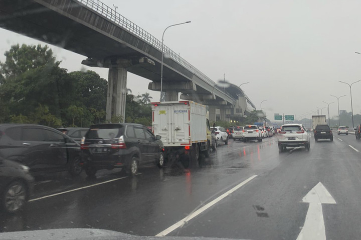 PT Jasamarga melalui X melaporkan kemacetan di Tol Jagorawi terjadi di sejumlah titik. Salah satunya di Cibubur KM 16 - KM 14 arah Jakarta.