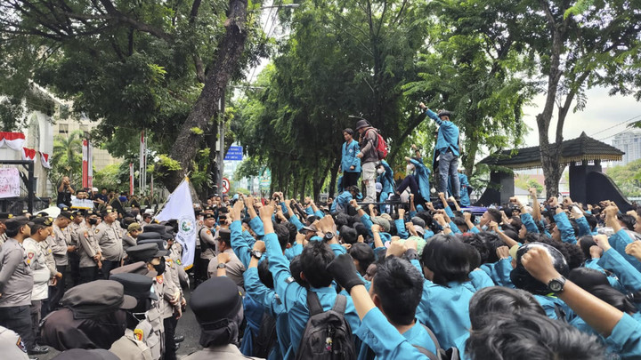 Kali ini massa mahasiswa menyampaikan tuntutan soal soal RUU Perampasan Aset agar segera disahkan oleh DPR.