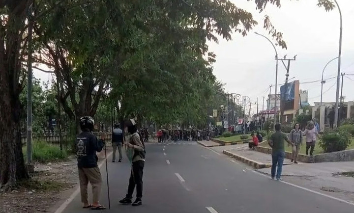 Pantaun di lokasi, tampak massa melempari batu ke arah Mako Polres. Polisi kemudian membalas dengan menembakkan gas air mata ke arah massa.