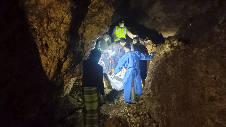 Saat mendekati mulut goa, mereka mencium bau menyengat yang berasal dari dalam goa. Saat ditelusuri, mereka menemukan kerangka manusia yang masih mengenakan pakaian kemeja dan sarung dengan kondisi tubuh yang sudah membusuk.