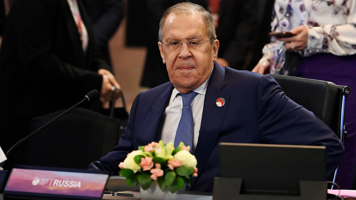 Menteri Luar Negeri Rusia Sergey Lavrov menghadiri pertemuan bilateral dengan Sekjen ASEAN Kao Kim Hourn di sela-sela pelaksanaan Post Ministerial Conference (PMC), pada Kamis (12/7).