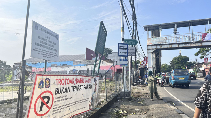 Di seberangnya, tepatnya di bawah Jembatan Penyeberangan Orang (JPO), berdiri sebidang lahan luas yang disebut-sebut bakal menjadi rumah baru bagi para pedagang Pasar Hewan Barito.
