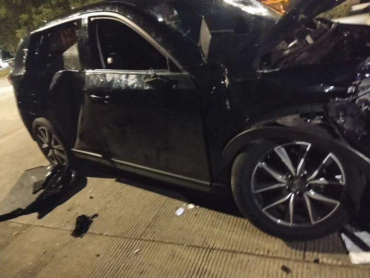 Mobil Mazda CX-5 mengalami kerusakan. Penyebab kecelakaan masih dalam proses penyelidikan. Polisi juga melakukan test urine terhadap pengemudi Mazda.