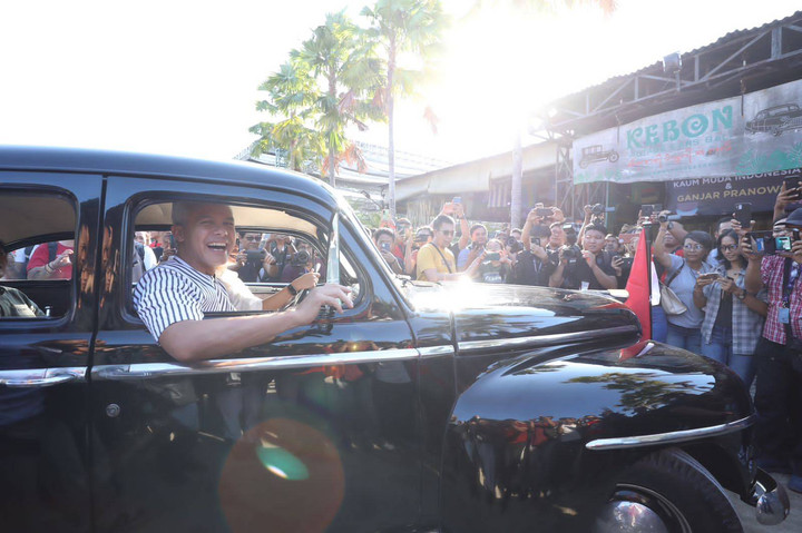 Ganjar menumpangi mobil Plymouth De Luxe milik eks Ibu Fatmawati.kumparanNEWS