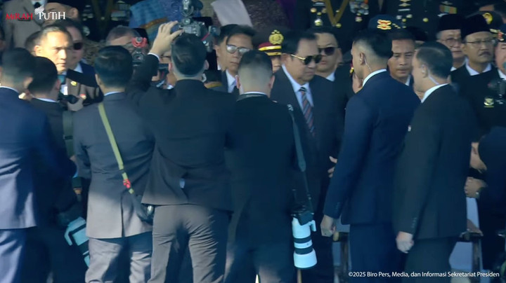 Momen itu terjadi ketika Gibran baru datang sekitar pukul 08.00 WIB. Gibran datang bersama rombongan Presiden Prabowo Subianto dan Kapolri Jenderal Listyo Sigit Prabowo.