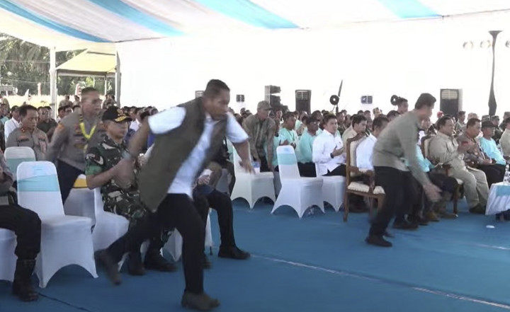 Berdasarkan pantauan dari YouTube Sekretariat Presiden, tampak Kepala KUA Kecamatan Sanggau, Ledo Imam Subakir, memimpin pembacaan do'a sebelum Prabowo berpidato.