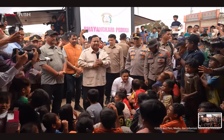 Sebelumnya, Presiden Prabowo Subianto mendarat di Bukit Rata, Aceh Tamiang dengan mengenakan setelan safari berwarna krem.