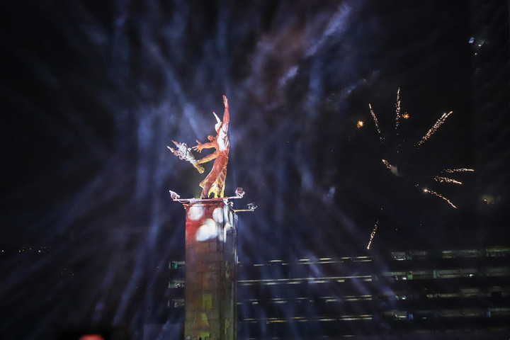 Warga yang berada di Bundaran HI pun tampak mengabadikan momen tersebut sejak hitung mundur dimulai.