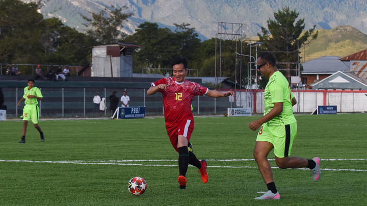 Dalam laga tersebut, Gibran sempat memberikan satu assist yang berujung gol dan juga berhasil mencetak tiga gol. Tim merah mencetak lima gol, sementara tim hijau mencetak dua gol yang disumbangkan oleh Komite Percepatan Pembangunan Otonomi Khusus Papua, Velix Vernando Wanggai. Pertandingan pun berakhir dengan skor 5-2 untuk kemenangan tim Gibran.