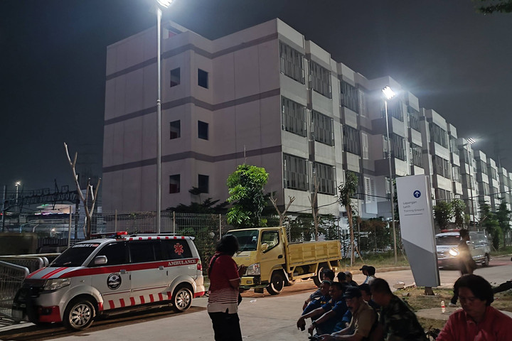 Di belakang bus, sejumlah truk berisi barang-barang milik warga menyusul. Proses pengangkutan barang ke dalam truk berlangsung lambat karena kondisi rusun yang gelap gulita.