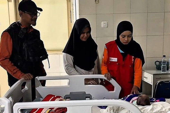 Seorang bayi mengalami patah tulang bahu saat lahir. Ibunya melahirkan di pengungsian di Aceh Tamiang. Melihat kondisi ini, tim gabungan pemerintah dan relawan datang dan mengevakuasi ibu dan bayi ke rumah sakit.