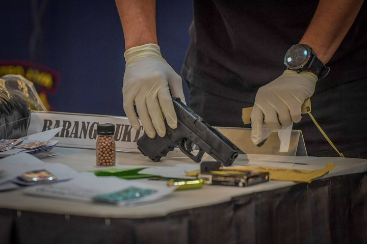 "Terhadap senjata ini deliknya berbeda. Kami sudah amankan tiga orang dari Lampung, sekarang dalam proses pemeriksaan," ujar Dirreskrimum Polda Metro Jaya Kombes Hengki Haryadi dalam jumpa pers, Jumat (5/5). Ketiga pelaku itu berinisial N, D, dan H.