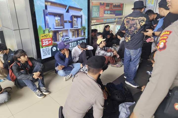 Sejumlah pelajar dan anak di bawah umur diamankan polisi saat hendak ikut demo di depan DPR, Kamis (28/8). Mereka tertangkap di Stasiun Palmerah.