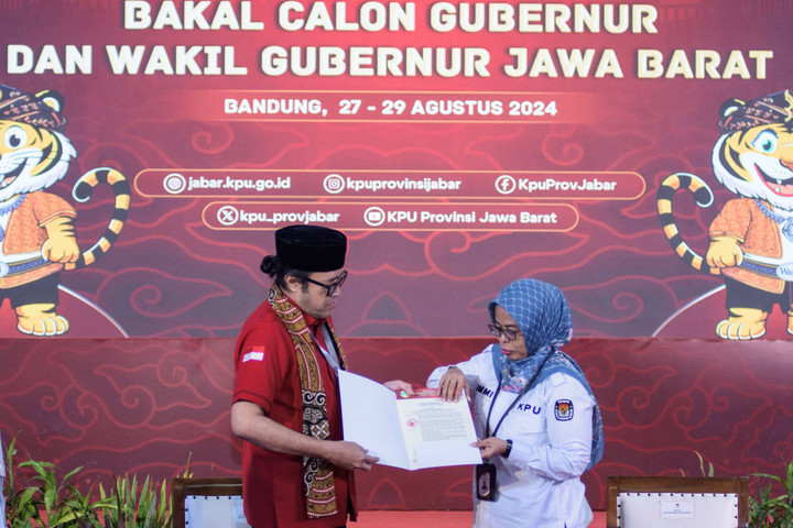 Ini satu-satunya paslon yang dikenalkan ke publik melewati pukul 23.59 WIB (29 Agustus 2024), itu pun dikenalkan lewat Zoomβmereka tidak hadir secara fisik di KPU Jabar.