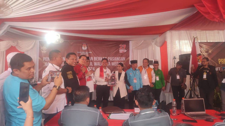Bakal calon Wali Kota Medan Ridha Dharma Jaya dan wakilnya, Abdul Rani, resmi mendaftar ke KPU Sumut pada Kamis (29/8).