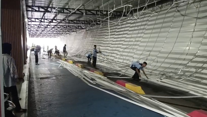 Kepala Bandara Sultan Babullah Ternate, Sigit Budiarto, menjelaskan plafon berbahan aluminium dengan panjang lebih dari 100 meter dan lebar sekitar 8 meter ambruk hingga berserakan di tanah.